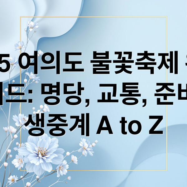 2025년 여의도 불꽃축제가 벌써부터 기대되시나요? 축제 정보부터 명당, 교통, 준비물, 생중계까지 완벽하게 준비하여 잊지 못할 추억을 만들어 보세요. 이 가이드